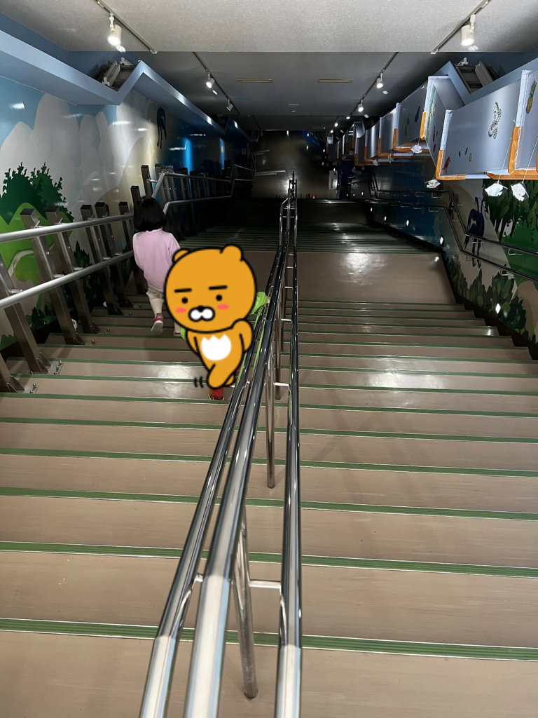 中にはお土産屋さんと小さな水槽があり、チケットを買って反対側の出口に進むと階段が現れます。