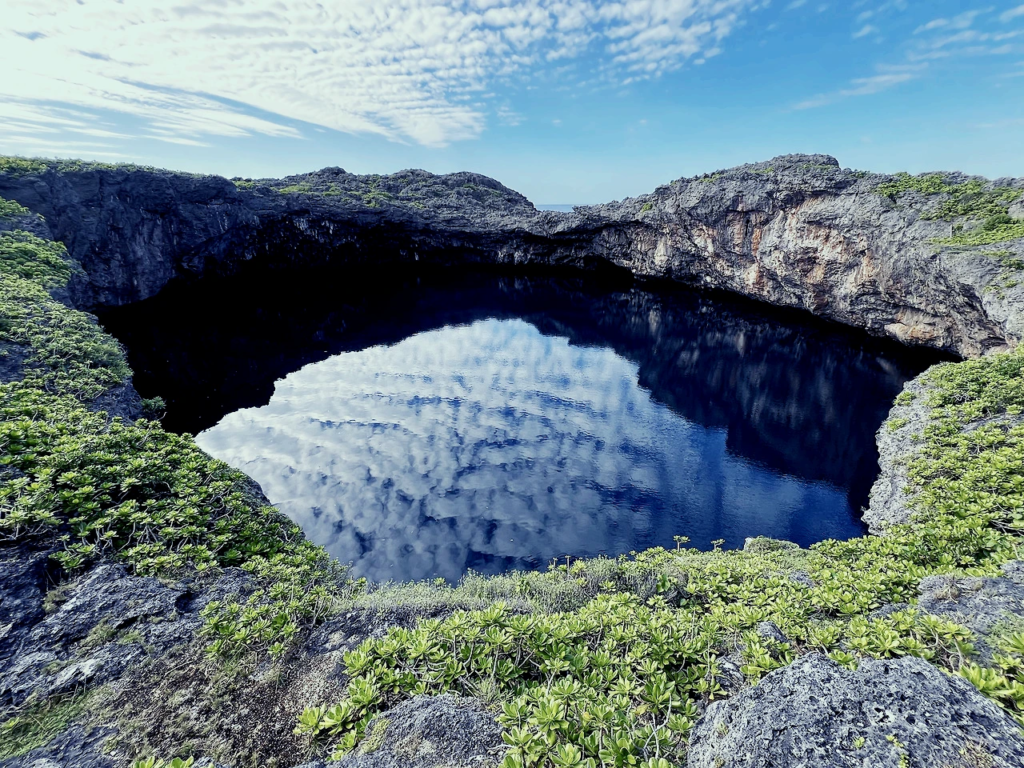 自然が生み出した不思議な池と、果てしなく広がる海。