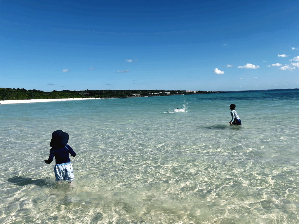 規模は小さいものの、水深が浅く、波もほとんどなく、子どもが遊ぶには理想的なビーチでした。